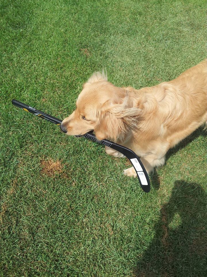 The Marine Corps mascot is a bull-dog, so I figured we could get one of those. Bull dog puppies are extremely cute, but they have a history of health problems and were not that cute past their puppy phase. So, jokingly, I said, “What about a Golden Retriever?! we could teach him how to play Hockey!” we both laughed and decided to do some research. Besides, Golden Retrievers are probably the happiest looking, and most beautiful creatures on this planet.
