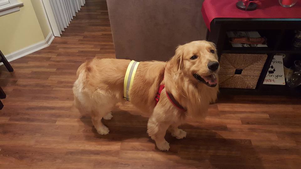 Lately we have been letting him wander ahead and explore. We live in a quiet neighborhood that is really friendly but cars do come through a bit fast. We decided it would be a good idea to make Oshie more visible and this was the result. He loved the walk and we eventually readjusted the glow belt so to prevent it from squeezing his man hood.