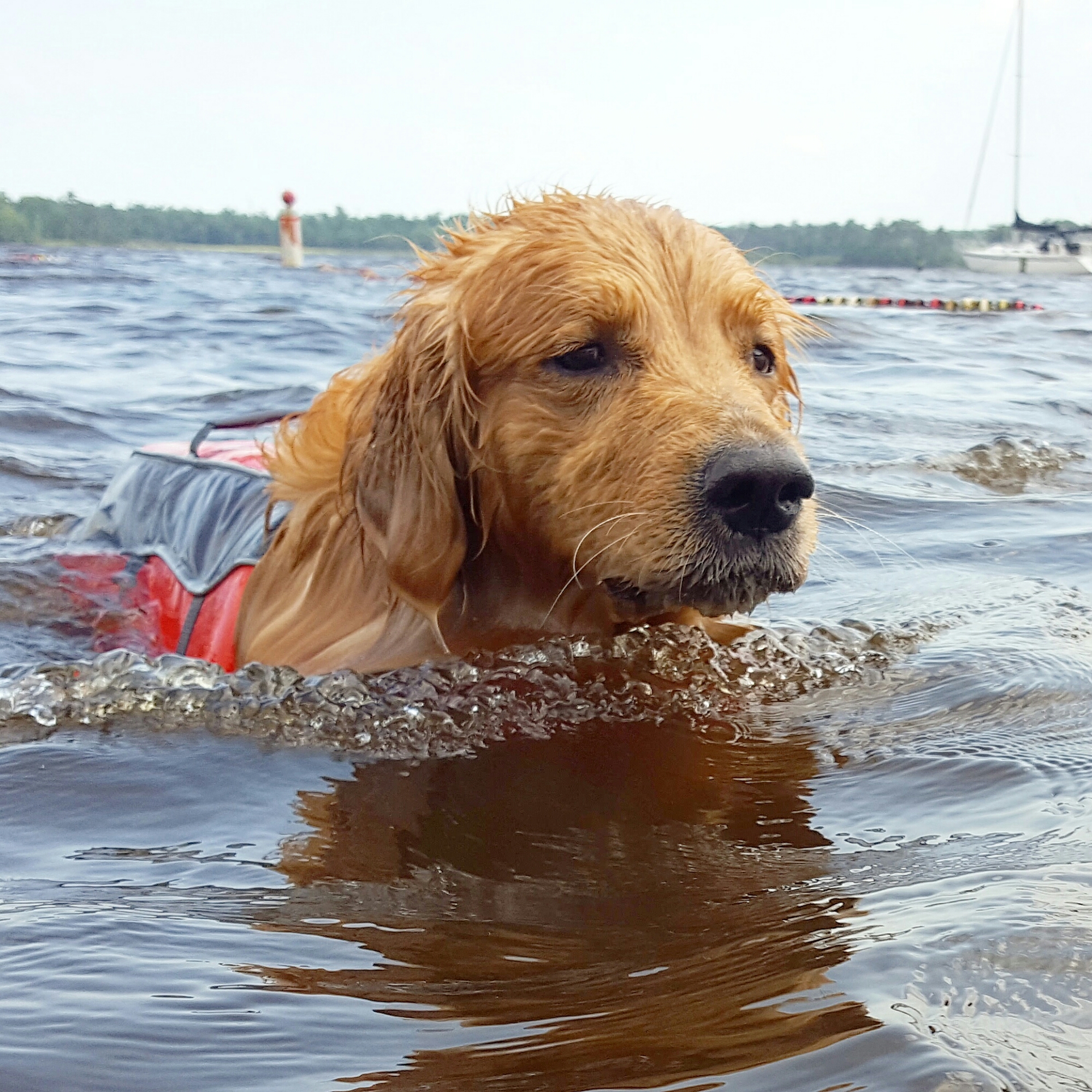 Oshie loves the water but he has only ever been to the beach so he has never actually done any real swimming. He did well especially when we had the life jacket on him. When we took it off he struggled a bit but a few more trips to the river and he will be like a fish.